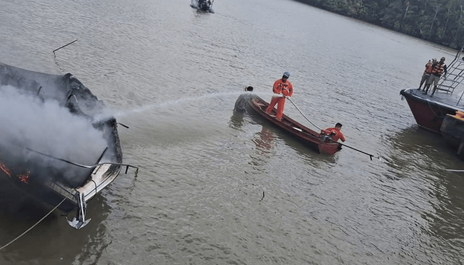 Tragédia Mulher morre e dois homens ficam feridos após lancha pegar fogo no Rio Arrozal, em Barcarena Edinei Campos 30 de setembro de 2025