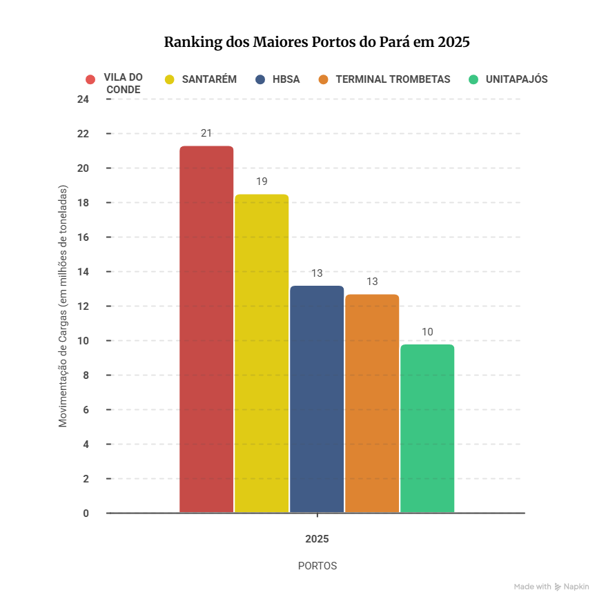 O Porto de Vila do Conde liderou o ranking estadual, seguido pelos portos públicos de Santarém e pelos terminais privados da Hidrovias do Brasil, MRN (Terminal Trombetas) e Unitapajós.