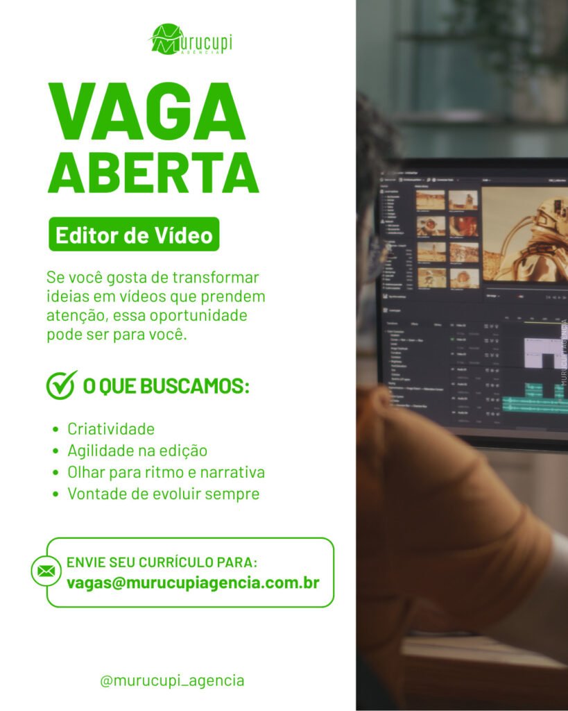 ALERTA DE VAGA |  EDITOR DE VÍDEO – MURUCUPI AGÊNCIA