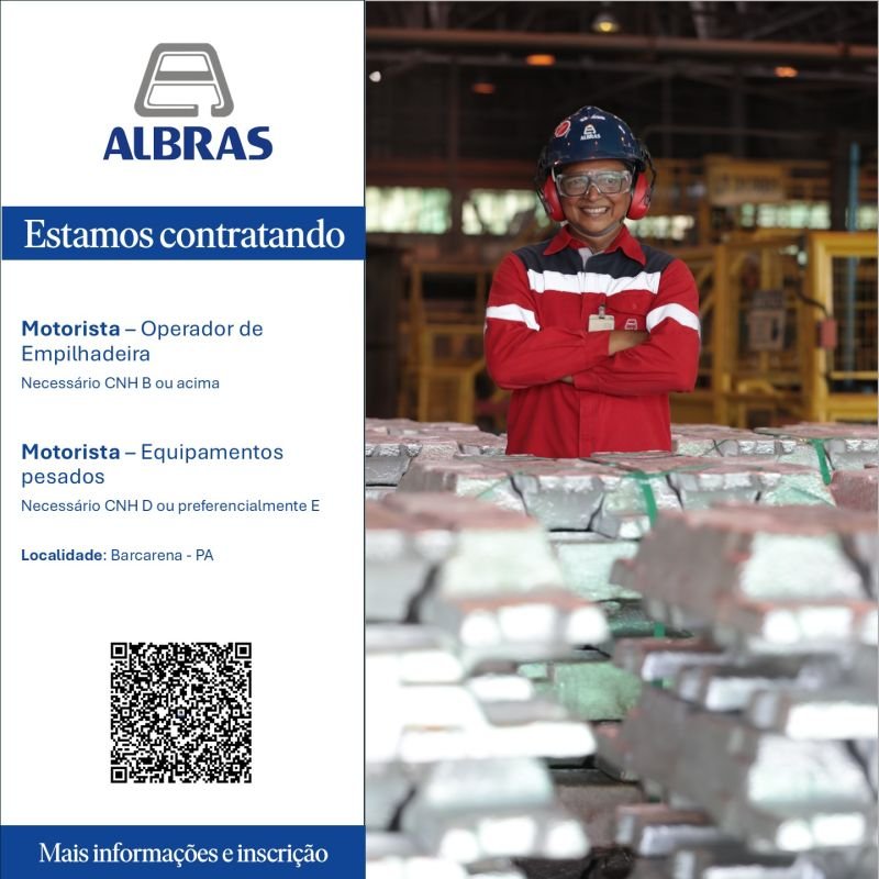 ALERTA DE VAGA | MOTORISTA OPERADOR DE TRANSPORTE DE CARGA (CNH B OU D OU E) – ALBRAS
