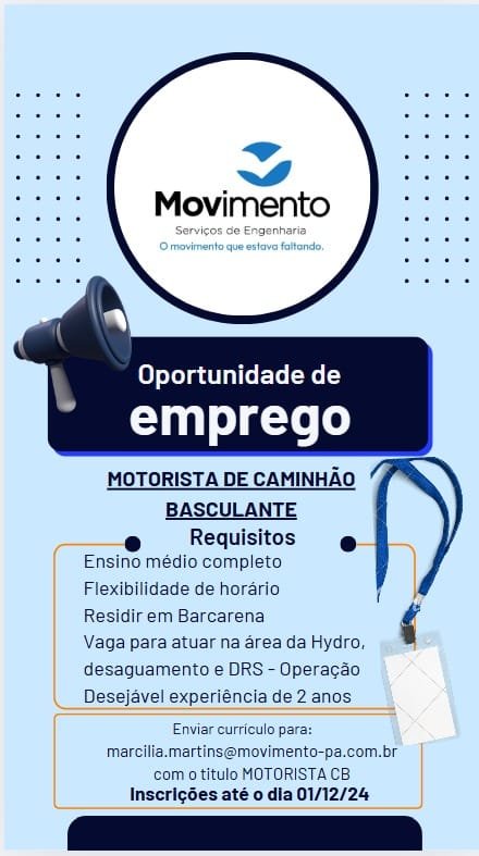 - Residir em Barcarena;
