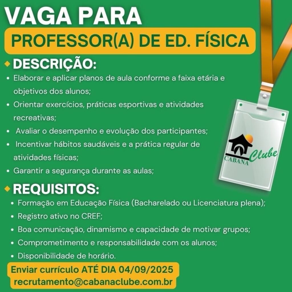 VAGA: PROFESSOR DE ED. FÍSICA – CABANA CLUBE